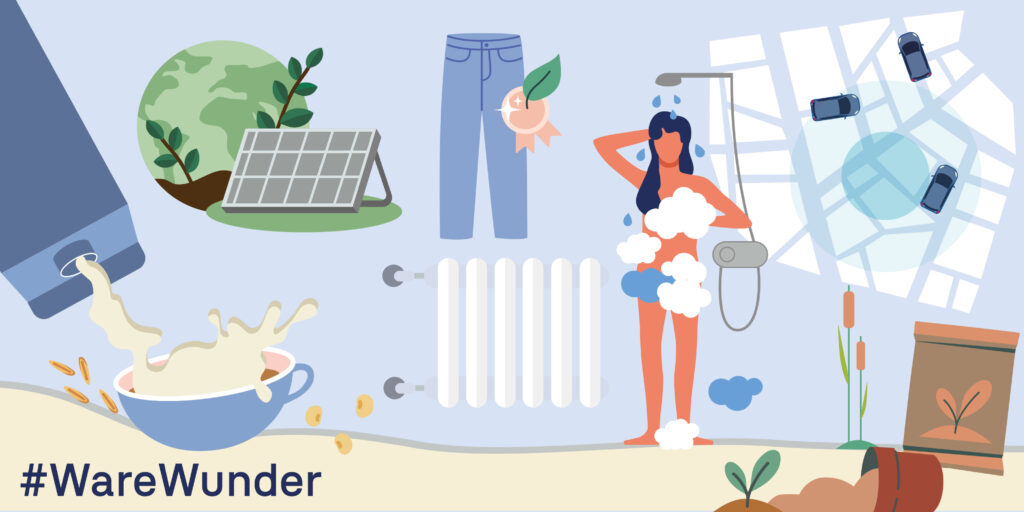 Wie wir wohnen, was wir essen, wie wir uns fortbewegen: unser Alltag hat Auswirkungen auf Ressourcen, Klima und Artenvielfalt. Die Kampagne #WareWunder des Umweltbundesamtes zeigt, dass ein umwelt- und klimaschonender Lebensstil auch ohne große Umstellungen möglich ist. Im Mittelpunkt stehen Waren und Produkte, die wir täglich nutzen. Der Landkreis und die Hansestadt Lüneburg haben sich der Kampagne angeschlossen, um zu zeigen: Umweltbewusstes Handeln beginnt im Alltag – und jeder Beitrag zählt. Die folgenden #WareWunder wurden bereits vorgestellt: