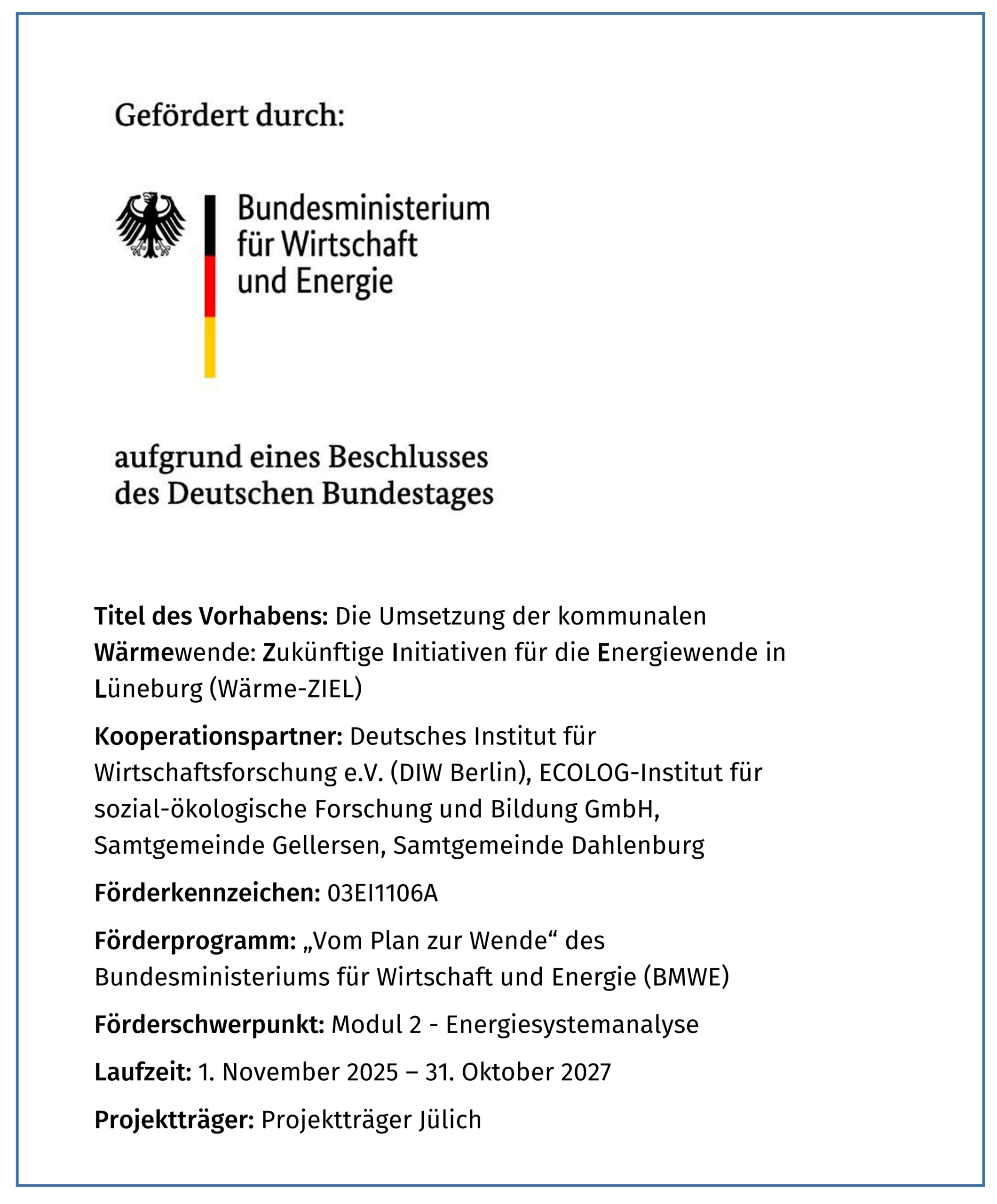 Die Hansestadt Lüneburg arbeitet dabei zusammen mit dem Deutschen Institut für Wirtschaftsforschung, dem ECOLOG-Institut und den Samtgemeinden Gellersen und Dahlenburg an dringenden Fragen der Wärmewende. So wird zum Beispiel untersucht, wie Strom- und Wärmenetze zusammenwirken, etwa wenn künftig vermehrt (Groß-)Wärmepumpen eingesetzt werden. Auch die Zukunft des Gasnetzes wird betrachtet.