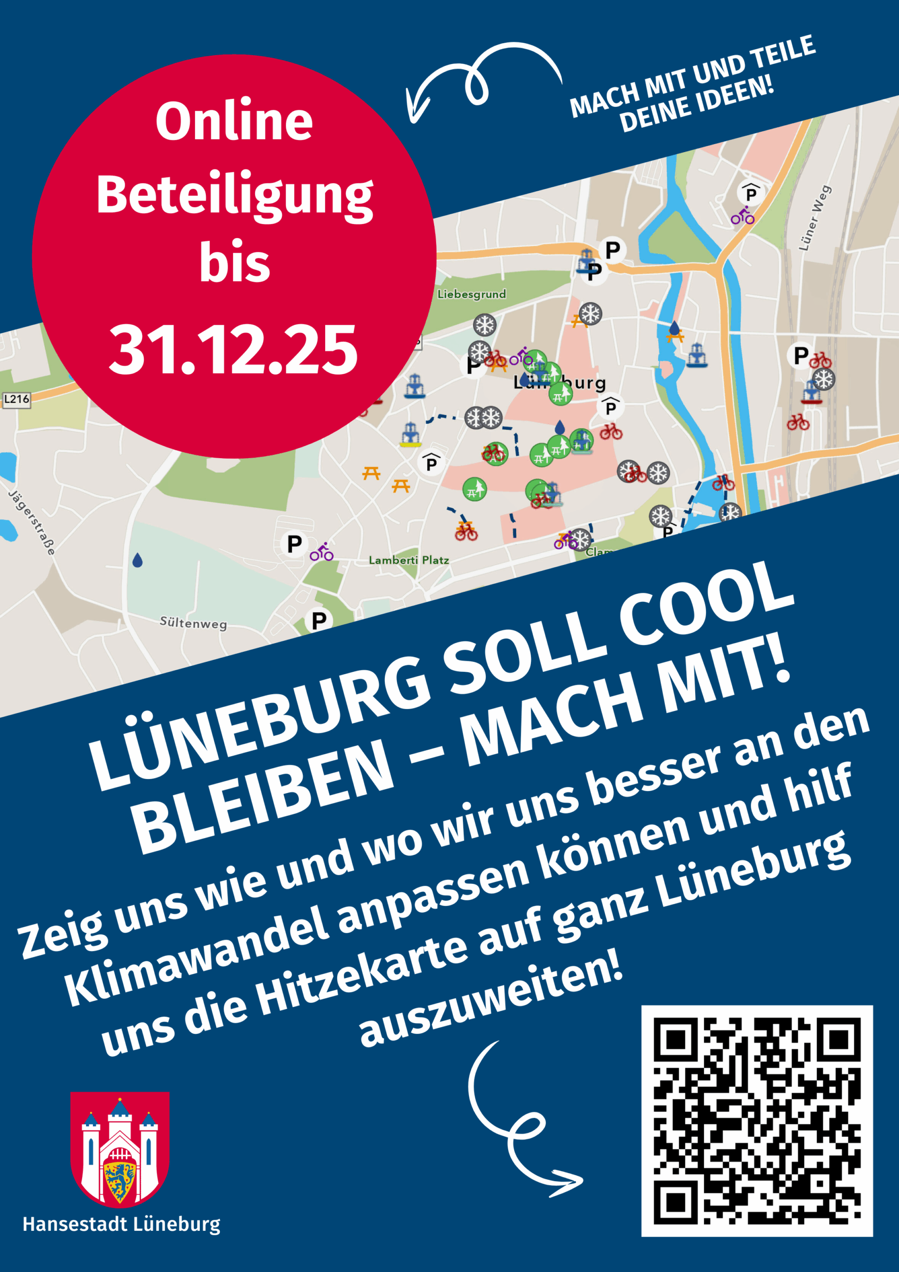 Teilnehmen können: alle Menschen, die sich mit Lüneburg verbunden fühlen Zur Mitmachkarte: https://klimaanpassung-stadt-lueneburg.hub.arcgis.com
